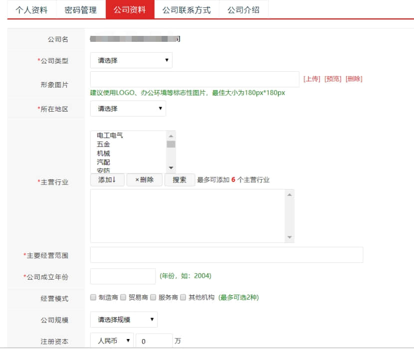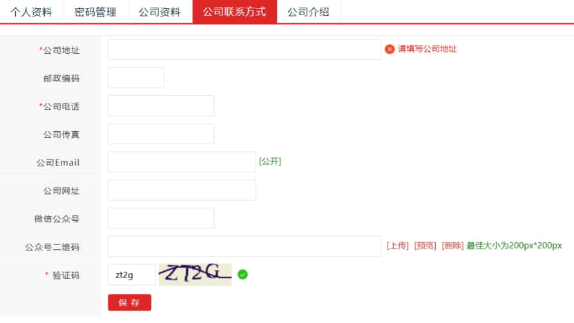 10. 點(diǎn)擊保存,會(huì)跳到個(gè)人信息這里,我們現(xiàn)在填寫的公司企業(yè)信息與個(gè)人信息,都會(huì)展現(xiàn)在我們的網(wǎng)站上面.這些都是基礎(chǔ)資料,所有務(wù)必要填寫正確.