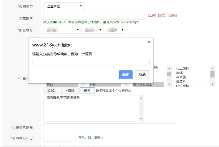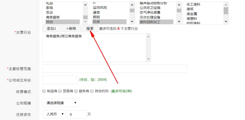 主營(yíng)行業(yè),如果找不到,可以選擇搜索,輸入自己的行業(yè),即可搜索出相關(guān)行業(yè),如果搜索不出,可以換關(guān)鍵詞來進(jìn)行搜索.