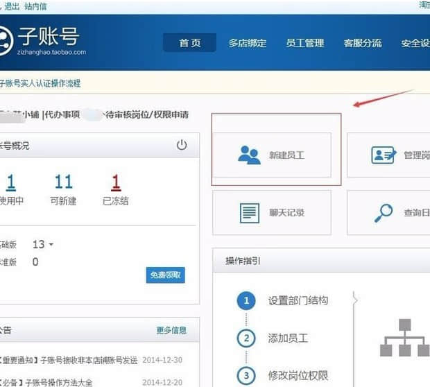 淘寶店鋪怎么設(shè)置子賬號(hào)