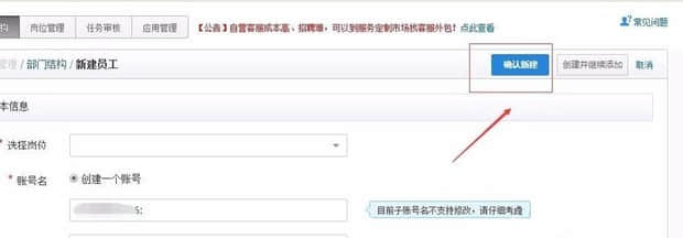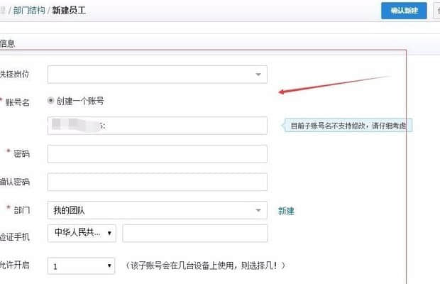 進(jìn)入子賬號(hào)中心,選擇“新建員工” 選擇之后,這里會(huì)有一個(gè)二次驗(yàn)證;
